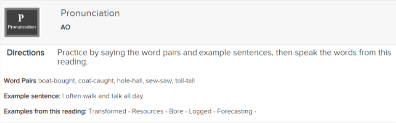 LessonWriter automatically provides pronunciation practice in its lessons, with whichever phoneme you choose. Note the example sentence here as well. This is a good tongue twister (see below)!