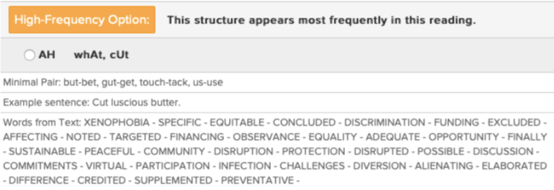 At LessonWriter, our Pronunciation Practice provides decoding support automatically with the phonemes of your choice. We suggest phonemes based on their prevalence in the text, the past phonemes you’ve taught in your lessons, and sequential difficulty of the phonemes. You can either choose our suggestions, or pick which ones you want to focus on in each lesson.