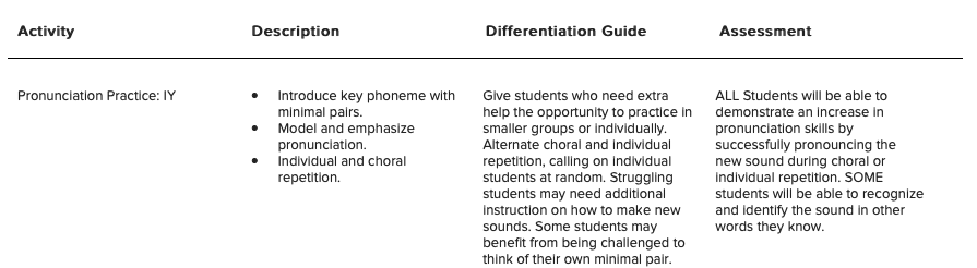 Next, select the activities and exercises that the students can complete in order to reach your lesson objective. For example, if your lesson objective is to teach that specific set of vocabulary to your ELL students, the activities you’re going to choose should reflect this objective.